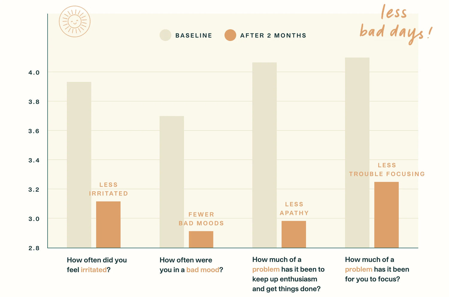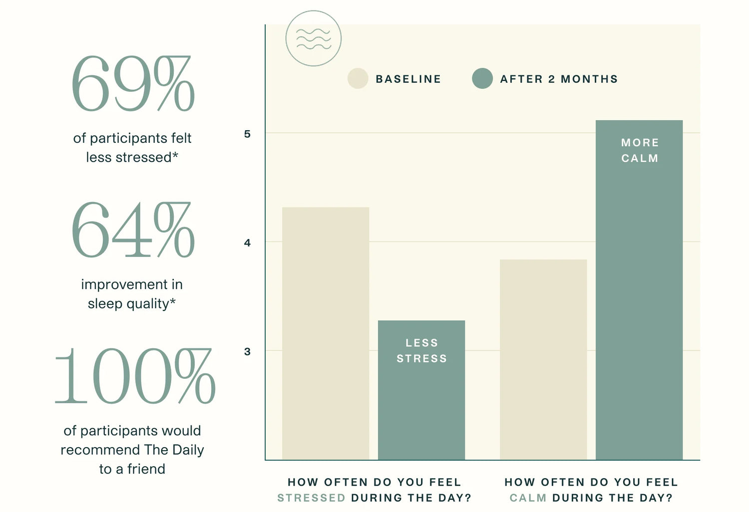 By positively impacting the stress response, The Daily helped significantly improve mood, focus and productivity.