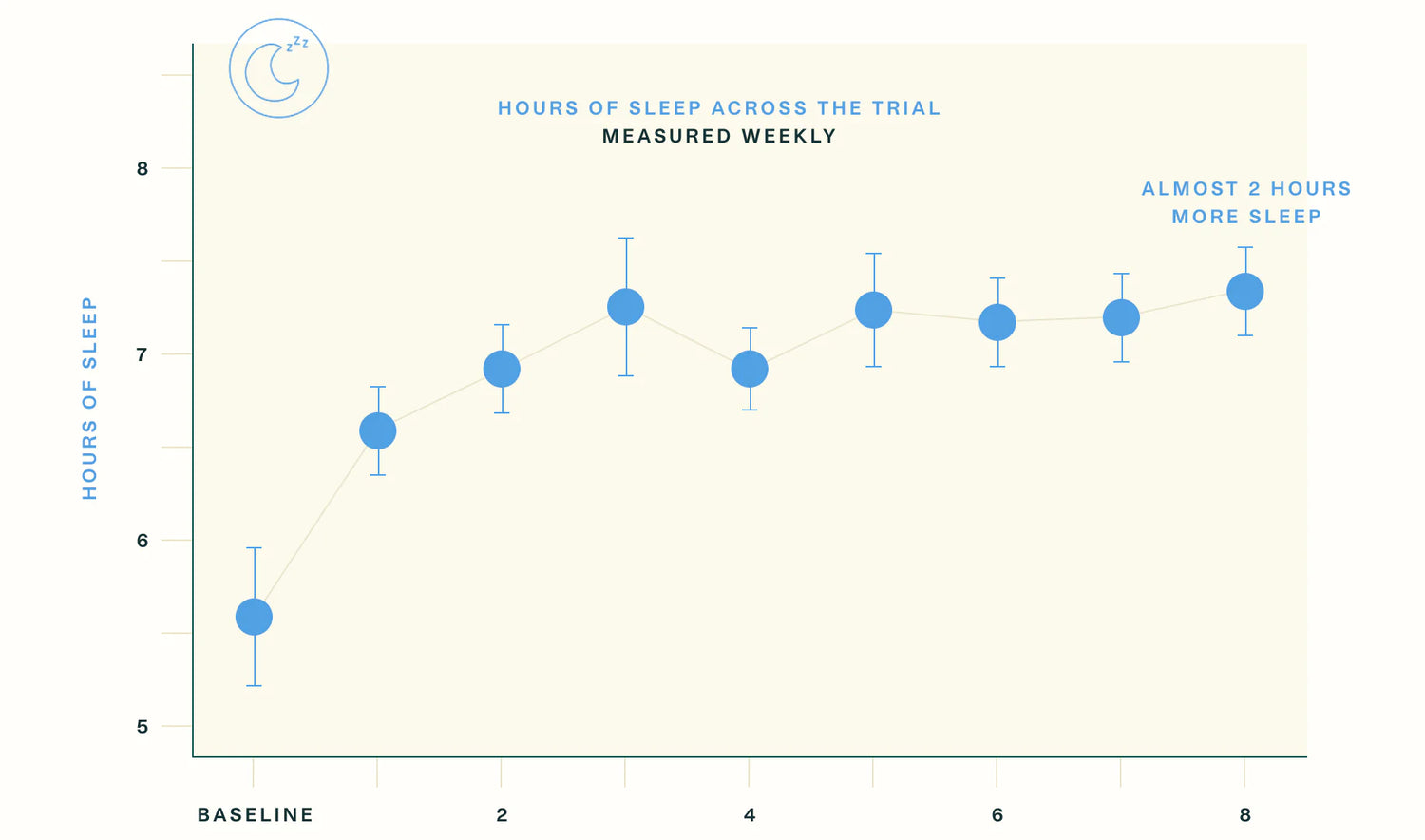 Participants saw an average of almost 2 hours of extra sleep per night after 2 months.